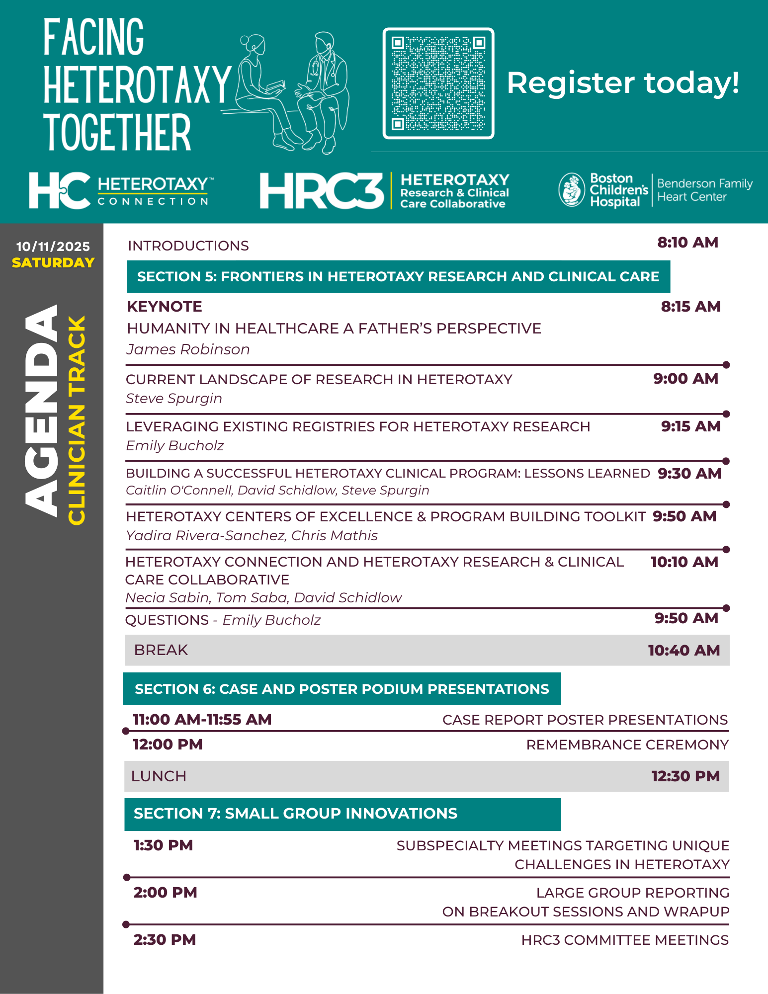 Mark your calendar for the Facing Heterotaxy Together event hosted by Heterotaxy Connection, in collaboration with Heterotaxy Research and Clinical Care Collaborative (HRC3) and Boston Children’s Benderson Family Heart Center.